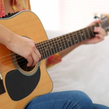 Our guitar lessons begin with the knowledge of notes, scales, and basic chords and progress into simple songs.